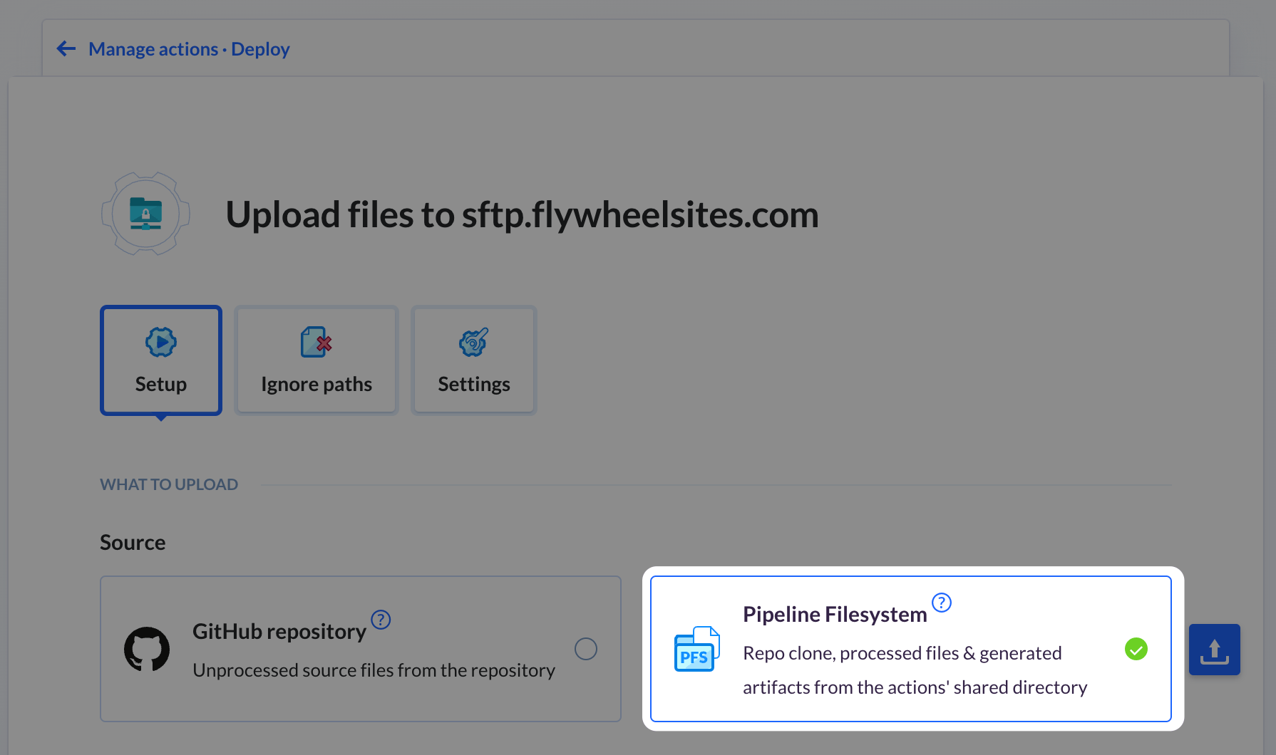 In order for this to work, you need to have the Upload files action set to use Pipeline Filesystem and not GitHub. It’ll still pull from GitHub, but apparently, this gives it permission to alter the files before uploading or something. This is crucial and tripped me up for quite a while setting this up. If you don’t do it, it seems like it is all working, but it just doesn’t work, the file uploads unchanged.